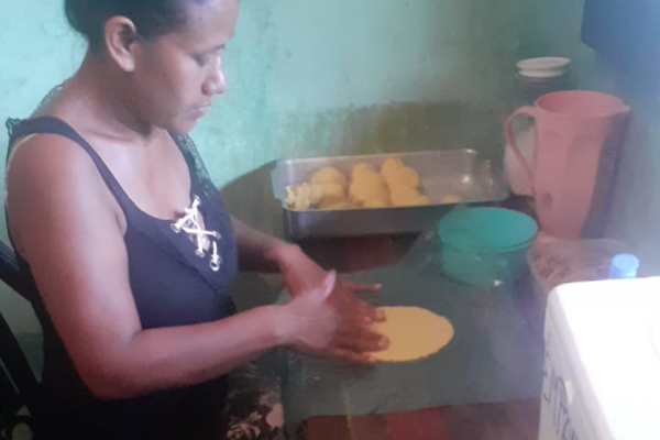 Com gosto pela cozinha desde pequena, Gardenia já tinha trabalhado com gastronomia em seu país e sempre gostou de transformar ingredientes em pratos cheios de sabor. Para as empanadas, amassa o cuscuz com água quente, com um pouco de sal e açúcar. Além das empanadas, prepara pastel e bolos.