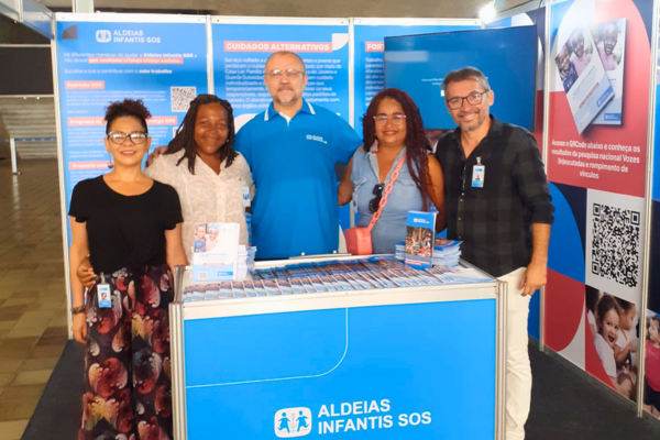 Equipe da Aldeias Infantis SOS em Pernambuco no estande do evento