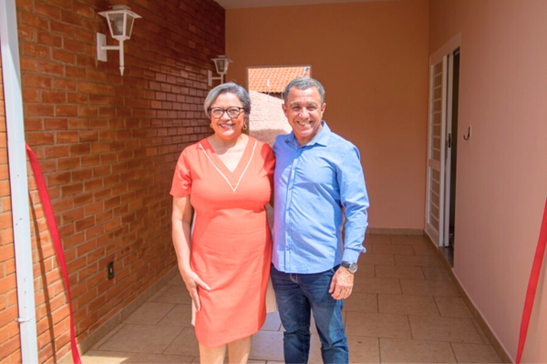 Maria Aucélia Damaceno, Presidente do Ceprosom e Alberto Guimarães, Gestor Nacional da Aldeias Infantis SOS, na inauguração da república em Limeira (SP).