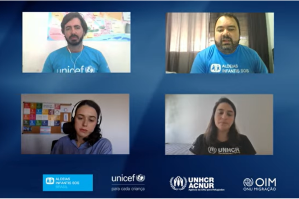 Em comemoração ao Dia Mundial do Refugiado, que é celebrado em 20 de junho, a conversa contou com a participação de Sérgio Eduardo Marques, Sub Gestor Nacional e responsável pela área de Advocacy, Alianças Institucionais e Cooperação da Aldeias Infantis SOS Brasil; Tomás da Cunha Tancredi, oficial de Proteção da Criança e Adolescente do UNICEF Brasil em Boa Vista (RR); Giulianna Serricella, Assistente Sênior de Proteção na ACNUR Brasil e Isadora Steffens, Coordenadora de Projetos da Organização Internacional para as Migrações (OIM).