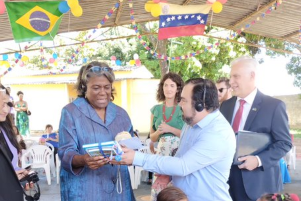 Linda Thomas-Greenfield fez um tour pela unidade em Brasília (DF) e conversou com uma das famílias venezuelanas refugiadas