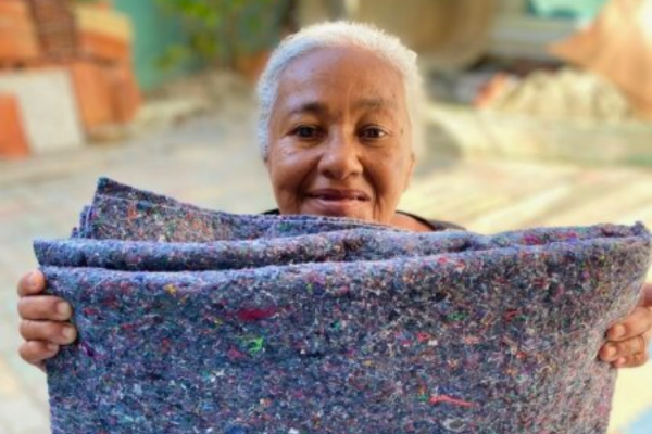 Todos os cobertores entregues foram confeccionados a partir da reciclagem de uniformes de colaboradores da empresa. Esse processo de reaproveitamento visa diminuir os efeitos poluentes da indústria têxtil que, apenas no Brasil, gera uma média de 175 mil toneladas de resíduos por ano, segundo dados da Associação Brasileira de Indústria Têxtil (ABIT).