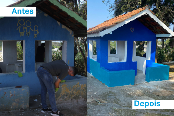 Voluntários da SC Johnson repintaram a casinha de brincadeiras em São Paulo